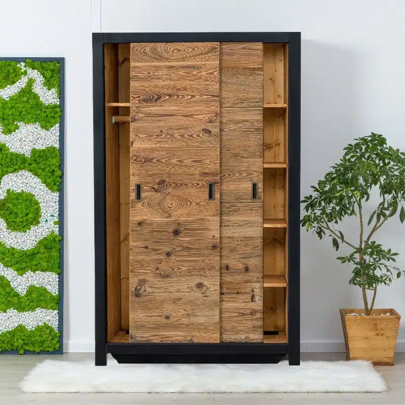 La collezione LOFT combina seducentemente il legno antico con una struttura in melamina nera PAL e maniglie moderne in metallo. Scegliendo la collezione LOFT, opti per arredamenti sia estetici che ecologici. Questa collezione, con i suoi pezzi unici, offre una vera sensazione di ‘industriale, conferendo un carattere speciale e un’autenticità agli interni del tuo spazio, che si tratti di una camera da letto o di un soggiorno.