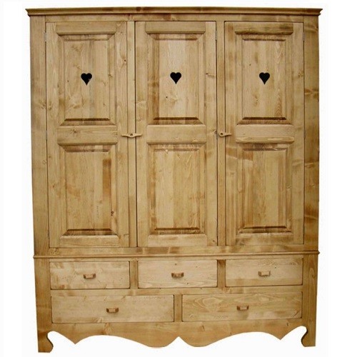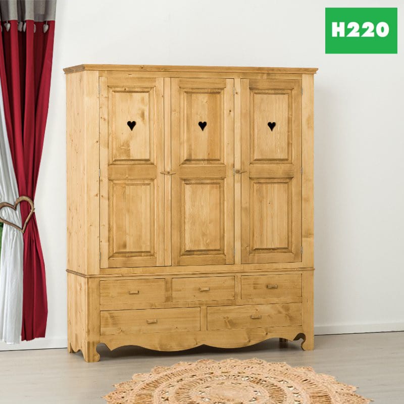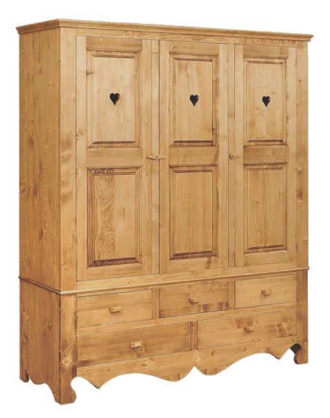 Lโambiente Chamonix รจ tipico delle abitazioni di montagna.ย Caratteristiche della collezione sono lo zoccolo lavorato e la presenza di maniglie/pomoli in legno e dei cuori sulle ante. Tutti gli articoli della linea vengono realizzati al 100% in LEGNO MASSELLO di ABETE, non ci sono parti in compensato/truciolare; anche il retro e il fondo dei cassetti.