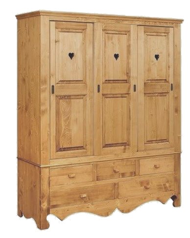 Lโambiente Chamonix รจ tipico delle abitazioni di montagna.ย Caratteristiche della collezione sono lo zoccolo lavorato e la presenza di maniglie/pomoli in legno e dei cuori sulle ante. Tutti gli articoli della linea vengono realizzati al 100% in LEGNO MASSELLO di ABETE, non ci sono parti in compensato/truciolare; anche il retro e il fondo dei cassetti.