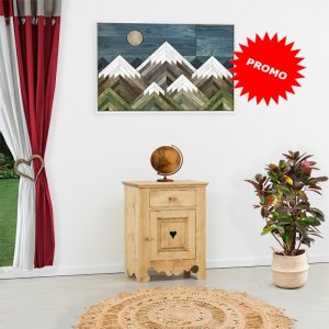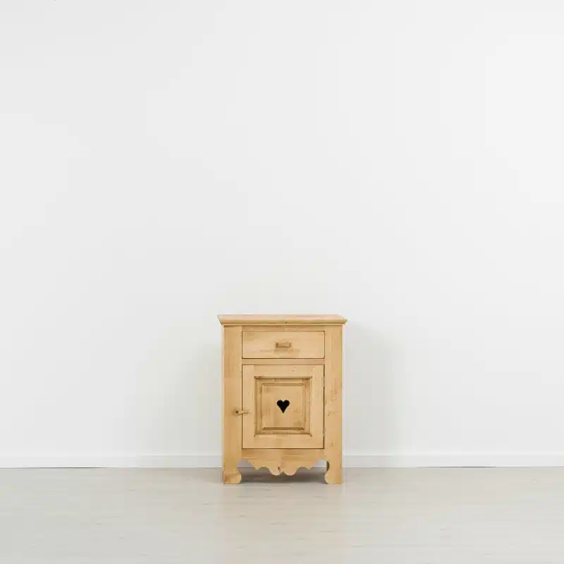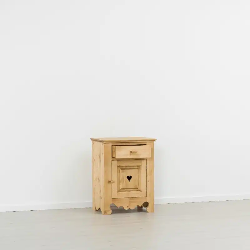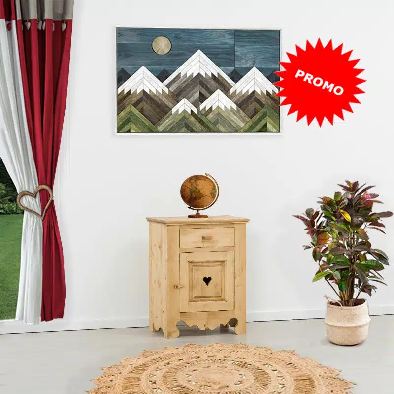 Lโambiente Chamonix รจ tipico delle abitazioni di montagna.ย Caratteristiche della collezione sono lo zoccolo lavorato e la presenza di maniglie/pomoli in legno e dei cuori sulle ante. Tutti gli articoli della linea vengono realizzati al 100% in LEGNO MASSELLO di ABETE, non ci sono parti in compensato/truciolare; anche il retro e il fondo dei cassetti.