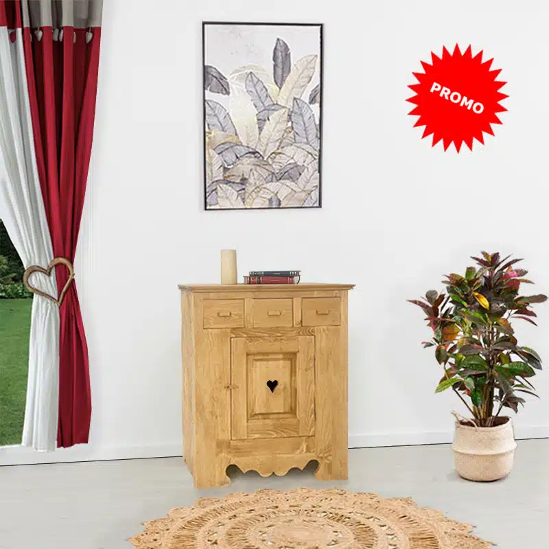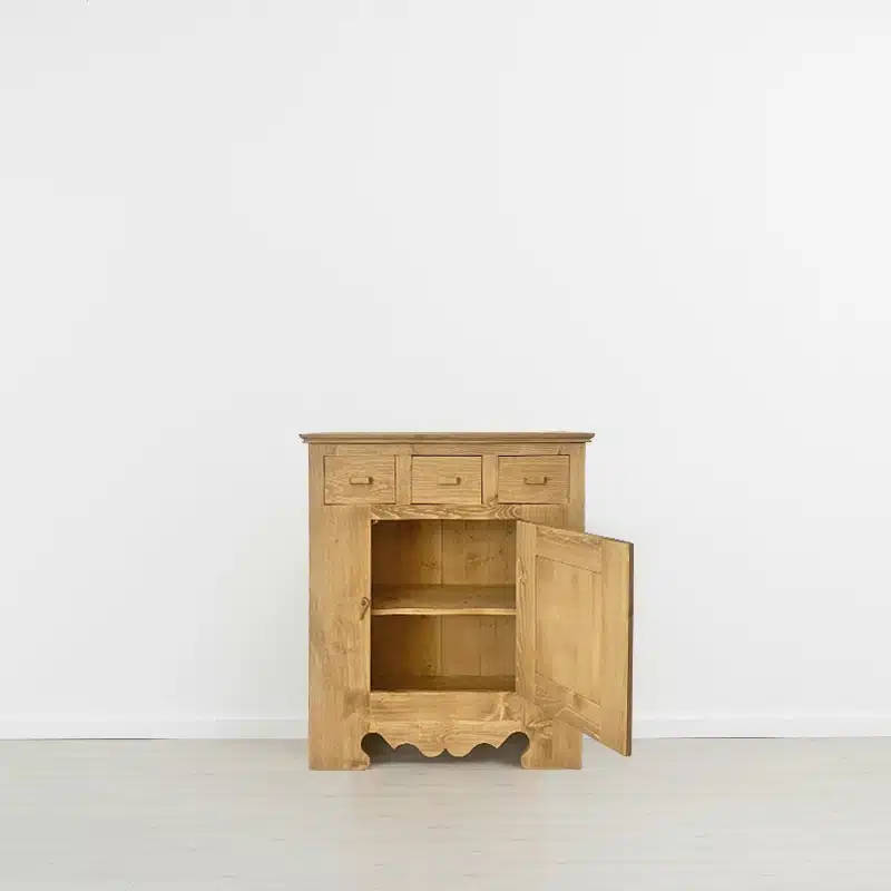 Lโambiente Chamonix รจ tipico delle abitazioni di montagna.ย Caratteristiche della collezione sono lo zoccolo lavorato e la presenza di maniglie/pomoli in legno e dei cuori sulle ante. Tutti gli articoli della linea vengono realizzati al 100% in LEGNO MASSELLO di ABETE, non ci sono parti in compensato/truciolare; anche il retro e il fondo dei cassetti.