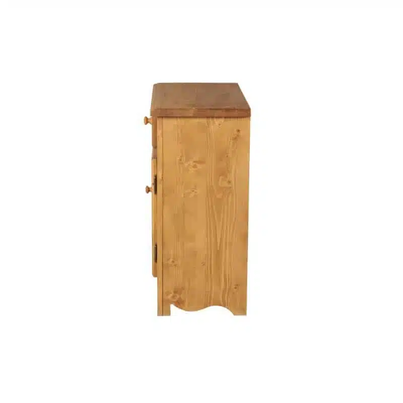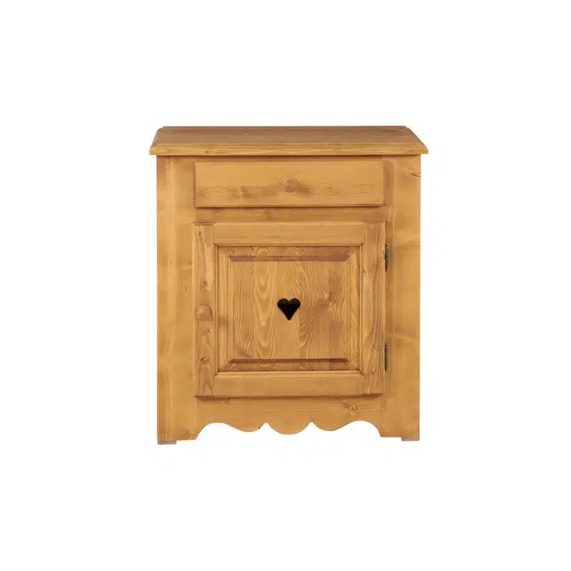 Lโambiente Aosta รจ tipico delle abitazioni di montagna.ย Caratteristiche della collezione sono lo zoccolo lavorato e la presenza di maniglie/pomoli in legno e dei cuori sulle ante. Tutti gli articoli della linea vengono realizzati al 100% in LEGNO MASSELLO di ABETE, non ci sono parti in compensato/truciolare; anche il retro e il fondo dei cassetti.