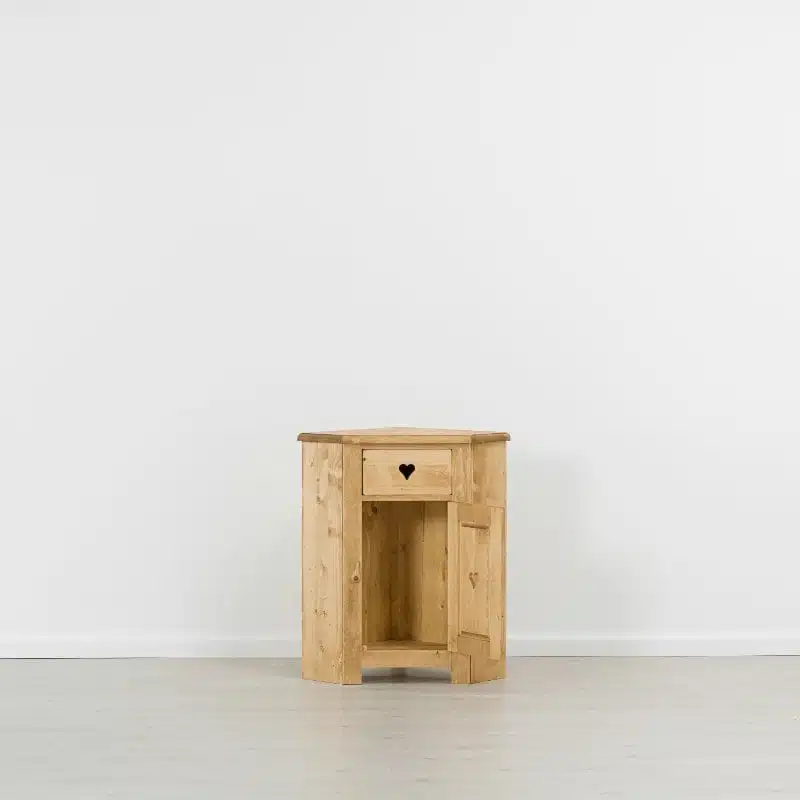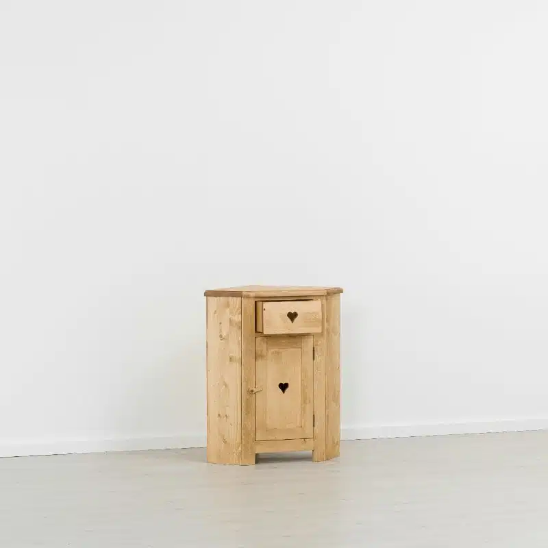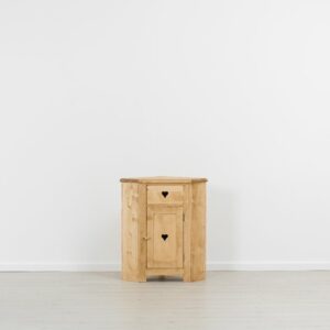 • Particolaritร :ย Cuori sui cassetti e sullโ€™anta;ย 1 ripiano internoย allโ€™anta;ย MISURA ANGOLO 54ร—54 cm