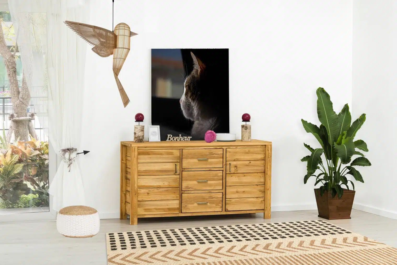 La collezione CORTINA enfatizza la durabilità del legno, sfruttando il legno secco proveniente dalle foreste per preservare la natura e mettere in risalto il suo colore naturale. La combinazione degli elementi distintivi dello stile scandinavo si unisce armoniosamente: le linee semplici sono valorizzate dalla finitura, dalla texture del legno spazzolato e dalla palette di colori neutri e naturali. Il risultato è una perfetta simbiosi che unisce funzionalità ed estetica, promuovendo il relax e il benessere.
