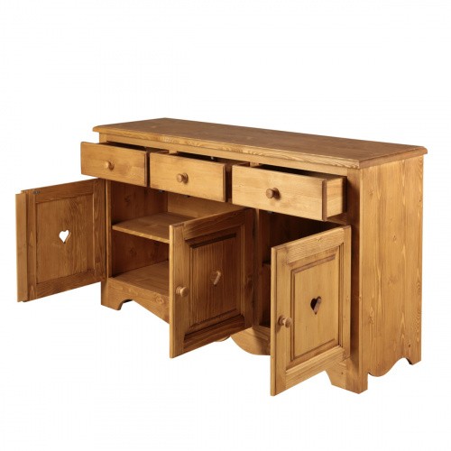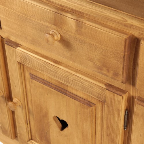 Lโambiente Aosta รจ tipico delle abitazioni di montagna.ย Caratteristiche della collezione sono lo zoccolo lavorato e la presenza di maniglie/pomoli in legno e dei cuori sulle ante. Tutti gli articoli della linea vengono realizzati al 100% in LEGNO MASSELLO di ABETE, non ci sono parti in compensato/truciolare; anche il retro e il fondo dei cassetti.