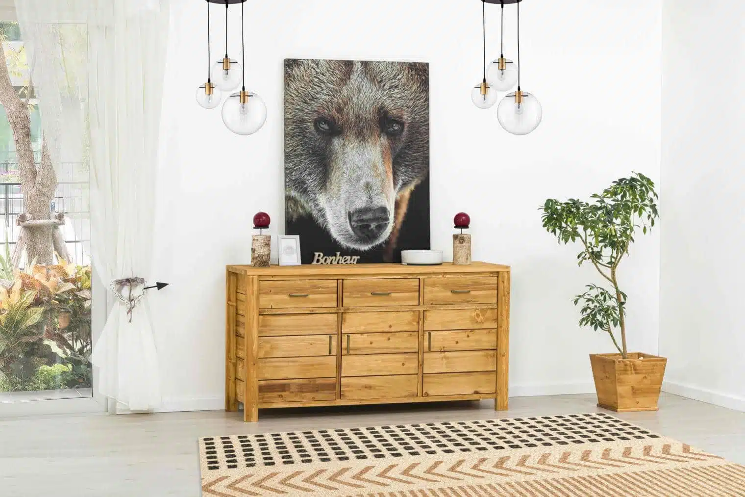 La collezione CORTINA enfatizza la durabilità del legno, sfruttando il legno secco proveniente dalle foreste per preservare la natura e mettere in risalto il suo colore naturale. La combinazione degli elementi distintivi dello stile scandinavo si unisce armoniosamente: le linee semplici sono valorizzate dalla finitura, dalla texture del legno spazzolato e dalla palette di colori neutri e naturali. Il risultato è una perfetta simbiosi che unisce funzionalità ed estetica, promuovendo il relax e il benessere.