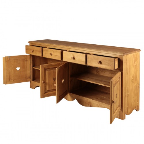 Lโambiente Aosta รจ tipico delle abitazioni di montagna.ย Caratteristiche della collezione sono lo zoccolo lavorato e la presenza di maniglie/pomoli in legno e dei cuori sulle ante. Tutti gli articoli della linea vengono realizzati al 100% in LEGNO MASSELLO di ABETE, non ci sono parti in compensato/truciolare; anche il retro e il fondo dei cassetti.