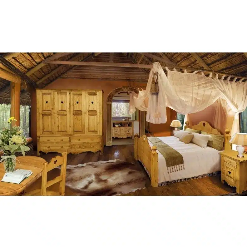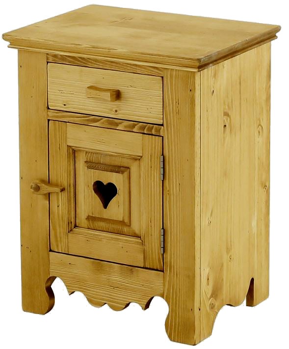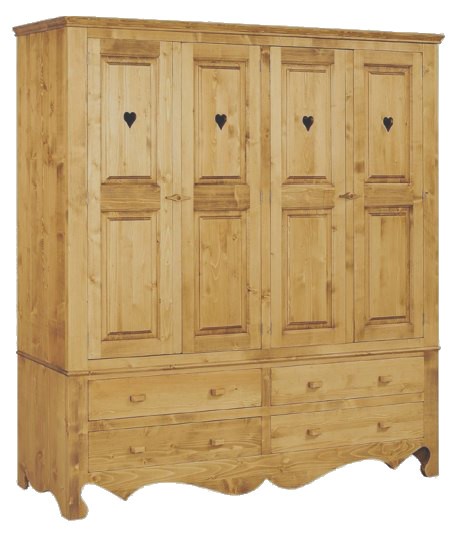 Lโambiente Chamonix รจ tipico delle abitazioni di montagna.ย Caratteristiche della collezione sono lo zoccolo lavorato e la presenza di maniglie/pomoli in legno e dei cuori sulle ante. Tutti gli articoli della linea vengono realizzati al 100% in LEGNO MASSELLO di ABETE, non ci sono parti in compensato/truciolare; anche il retro e il fondo dei cassetti.