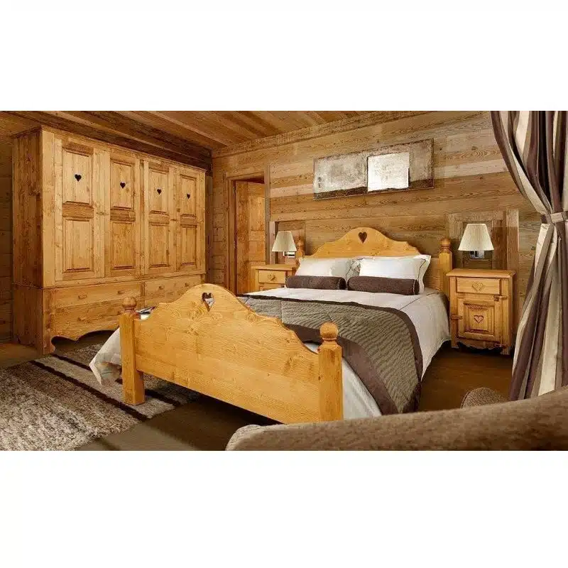 Lโambiente Chamonix รจ tipico delle abitazioni di montagna.ย Caratteristiche della collezione sono lo zoccolo lavorato e la presenza di maniglie/pomoli in legno e dei cuori sulle ante. Tutti gli articoli della linea vengono realizzati al 100% in LEGNO MASSELLO di ABETE, non ci sono parti in compensato/truciolare; anche il retro e il fondo dei cassetti.