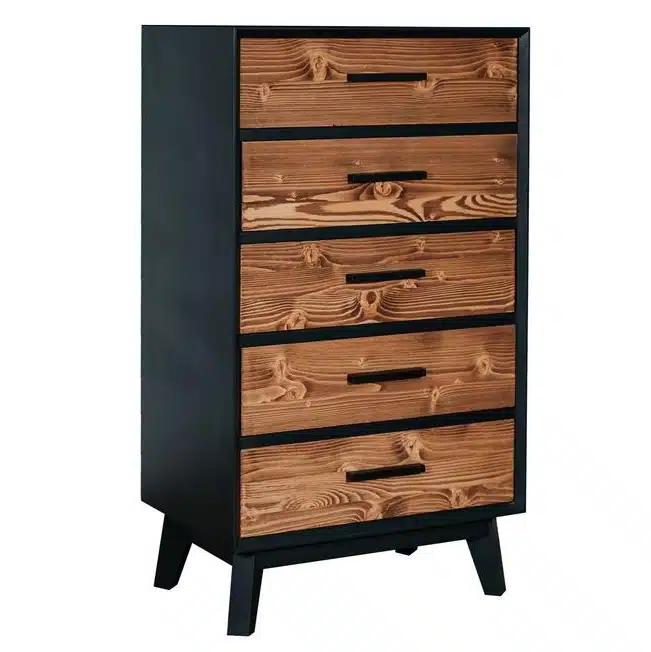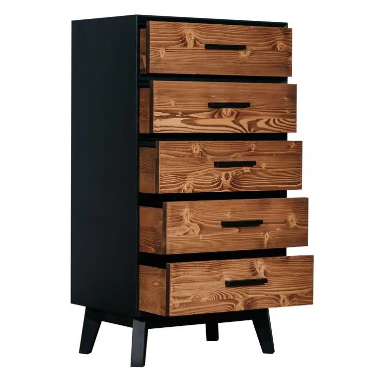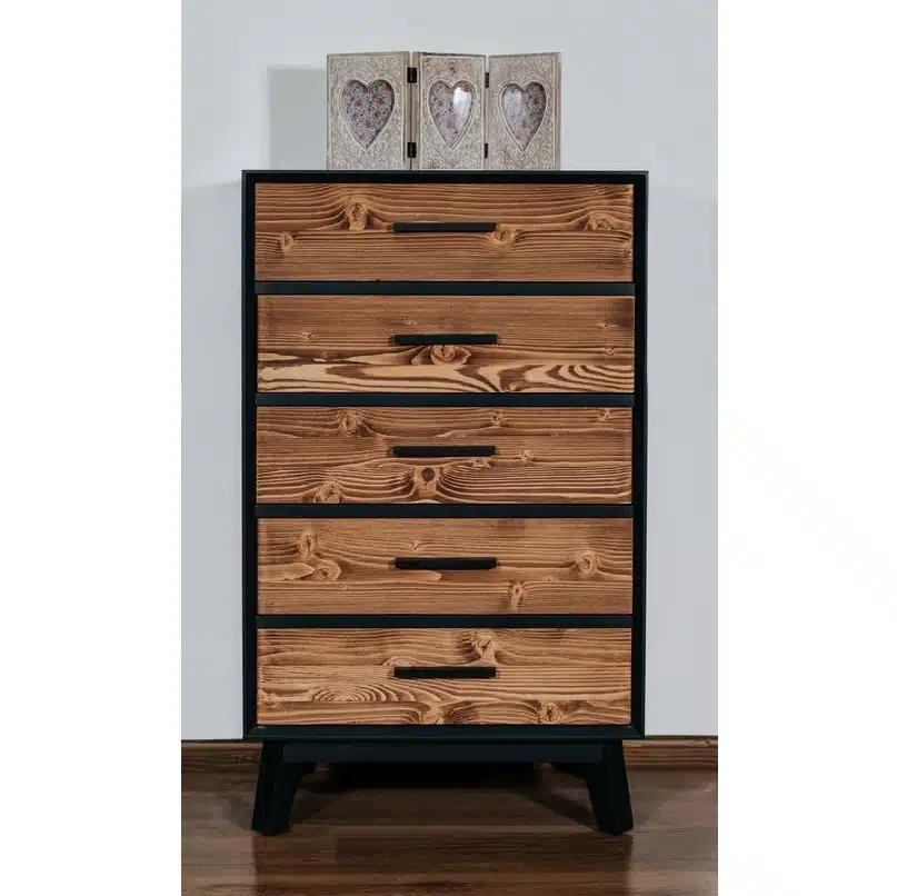 • Particolarità: Maniglia in abete laccato nero sui cassetti
