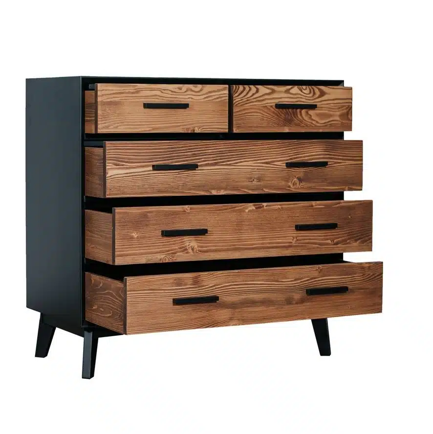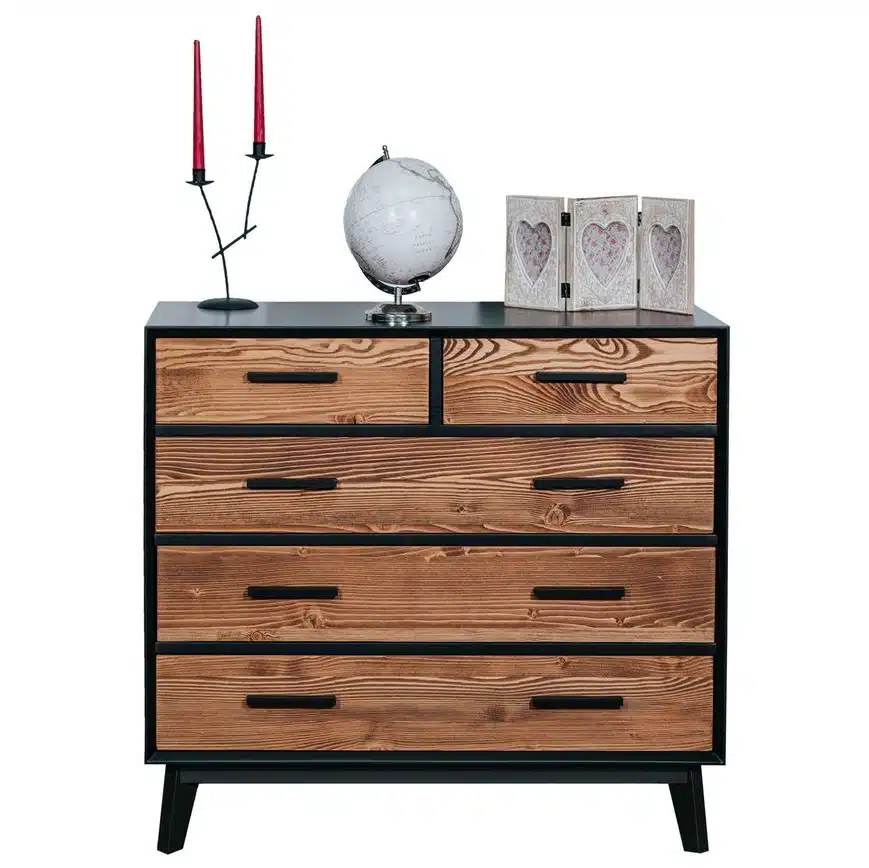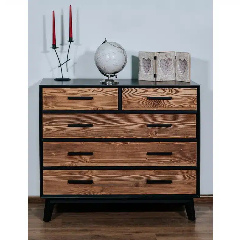 • Particolarità: Maniglia in abete laccato nero sui cassetti