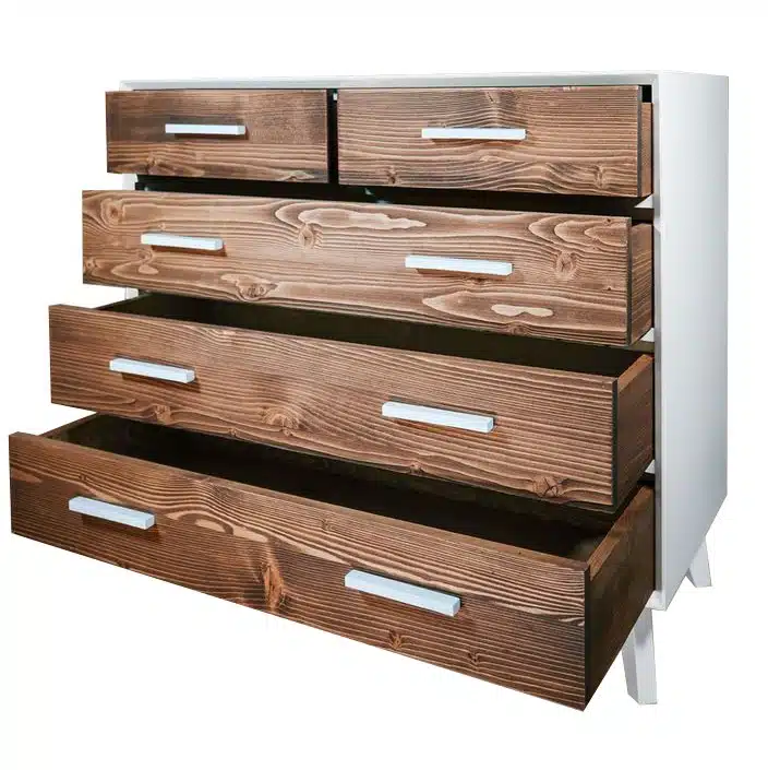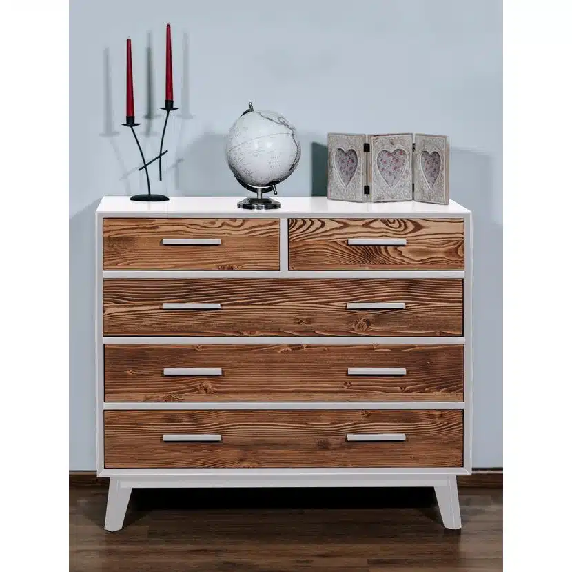 • Materiale: Ante e frontale dei cassetti 100% LEGNO DI ABETE MASSELLO SPAZZOLATO