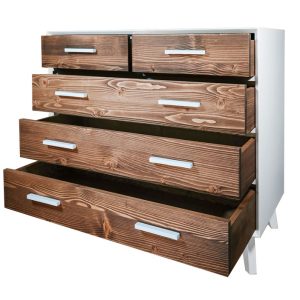 • Particolarità: Maniglia in abete laccato bianco sui cassetti