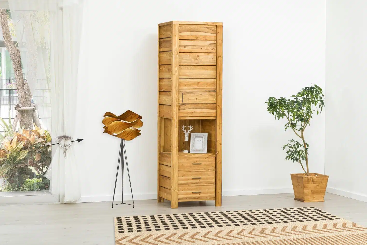 La collezione CORTINA enfatizza la durabilità del legno, sfruttando il legno secco proveniente dalle foreste per preservare la natura e mettere in risalto il suo colore naturale. La combinazione degli elementi distintivi dello stile scandinavo si unisce armoniosamente: le linee semplici sono valorizzate dalla finitura, dalla texture del legno spazzolato e dalla palette di colori neutri e naturali. Il risultato è una perfetta simbiosi che unisce funzionalità ed estetica, promuovendo il relax e il benessere.