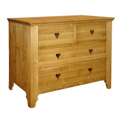 La collezione Megeve evoca il legno nel senso originario del termine. Cuori intagliati tipici di mobili country e rustici tradizionali, la sobrietà dei suoi spessori dà ad ogni ambiente un aspetto accogliente in cui vivere.