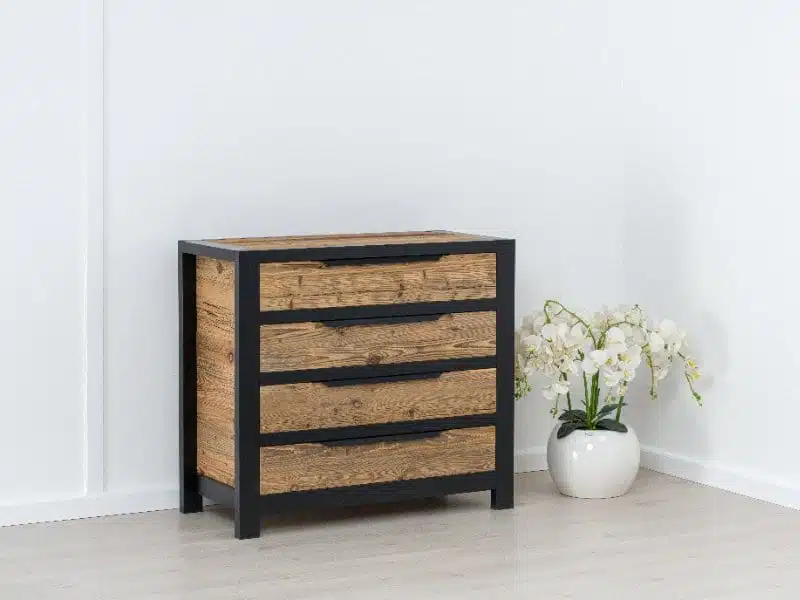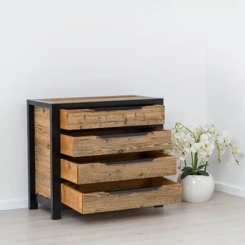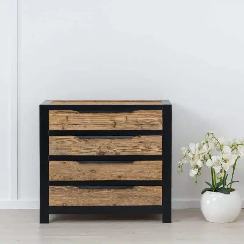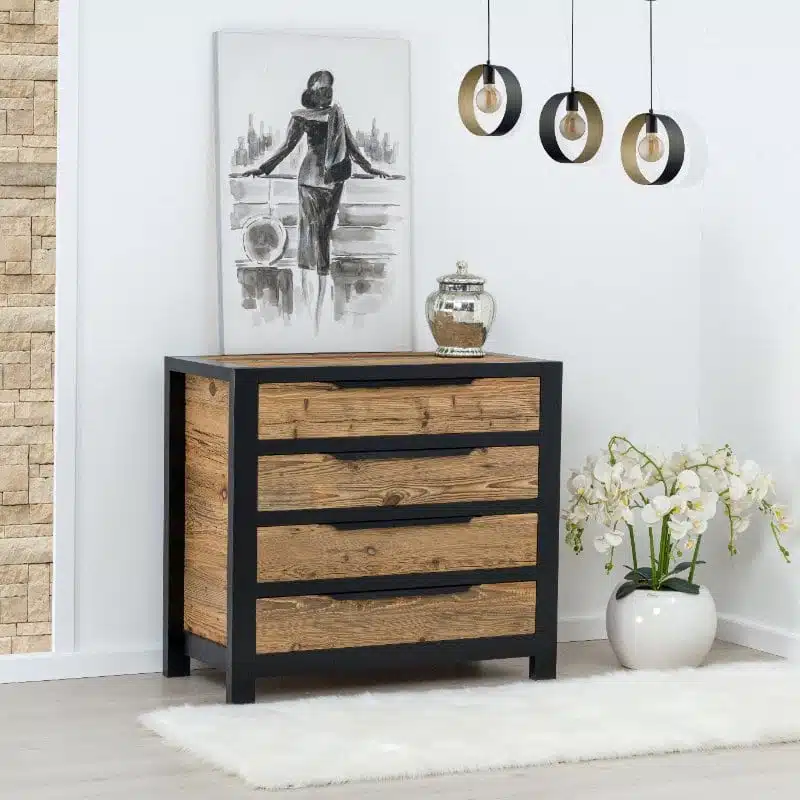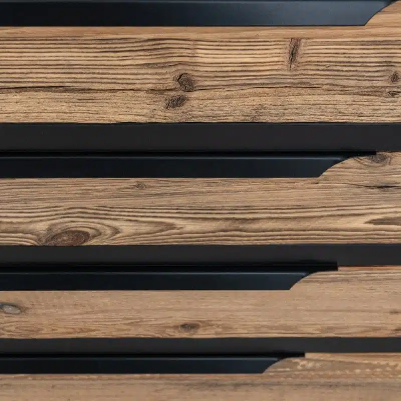 La collezione LOFT combina seducentemente il legno antico con una struttura in melamina nera PAL e maniglie moderne in metallo. Scegliendo la collezione LOFT, opti per arredamenti sia estetici che ecologici. Questa collezione, con i suoi pezzi unici, offre una vera sensazione di ‘industriale, conferendo un carattere speciale e un’autenticità agli interni del tuo spazio, che si tratti di una camera da letto o di un soggiorno.