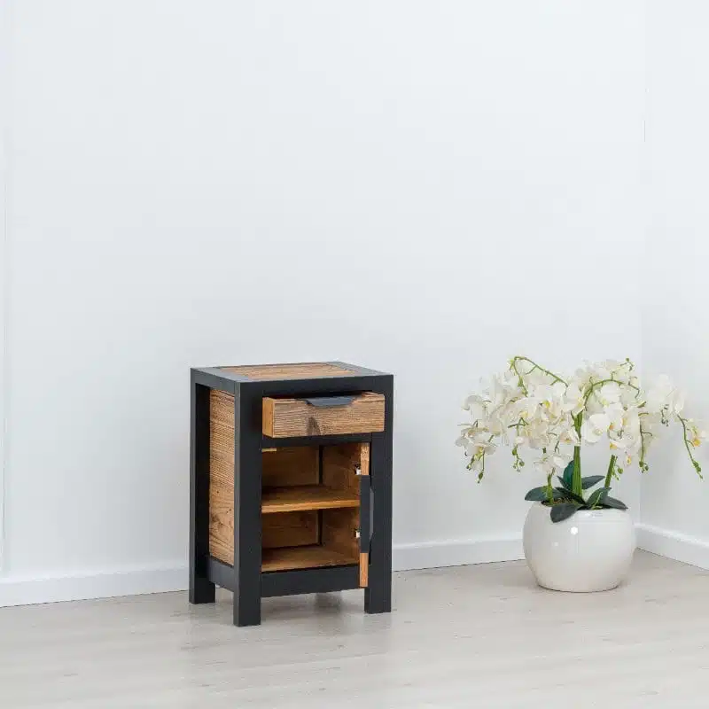 La collezione LOFT combina seducentemente il legno antico con una struttura in melamina nera PAL e maniglie moderne in metallo. Scegliendo la collezione LOFT, opti per arredamenti sia estetici che ecologici. Questa collezione, con i suoi pezzi unici, offre una vera sensazione di ‘industriale, conferendo un carattere speciale e un’autenticità agli interni del tuo spazio, che si tratti di una camera da letto o di un soggiorno.
