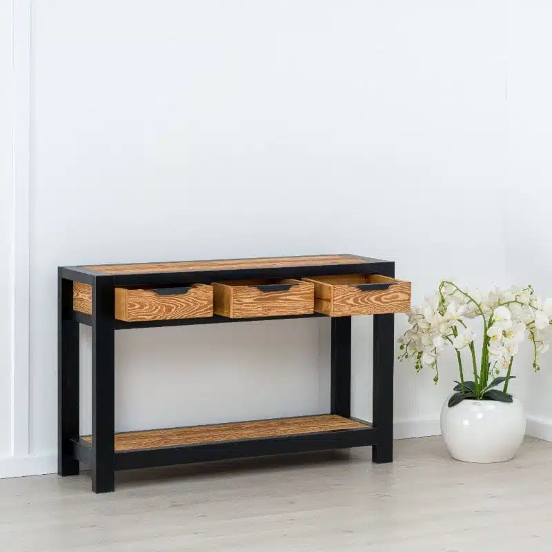 La collezione LOFT combina seducentemente il legno antico con una struttura in melamina nera PAL e maniglie moderne in metallo. Scegliendo la collezione LOFT, opti per arredamenti sia estetici che ecologici. Questa collezione, con i suoi pezzi unici, offre una vera sensazione di ‘industriale, conferendo un carattere speciale e un’autenticità agli interni del tuo spazio, che si tratti di una camera da letto o di un soggiorno.