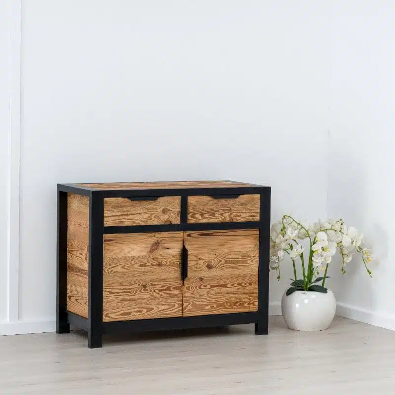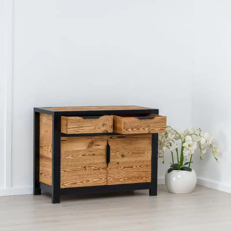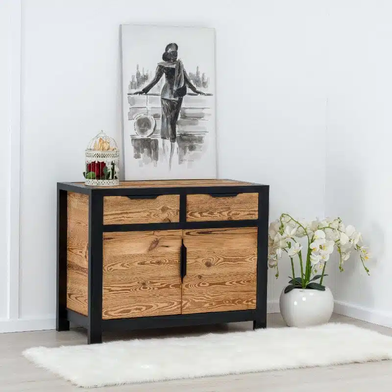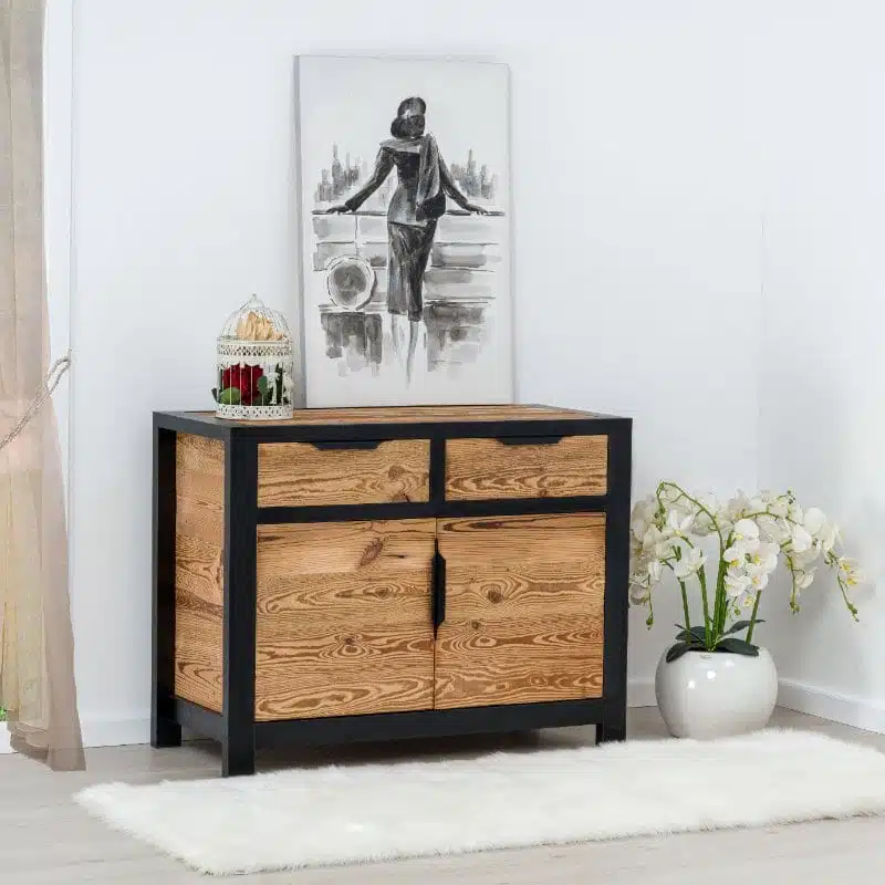 La collezione LOFT combina seducentemente il legno antico con una struttura in melamina nera PAL e maniglie moderne in metallo. Scegliendo la collezione LOFT, opti per arredamenti sia estetici che ecologici. Questa collezione, con i suoi pezzi unici, offre una vera sensazione di ‘industriale, conferendo un carattere speciale e un’autenticità agli interni del tuo spazio, che si tratti di una camera da letto o di un soggiorno.