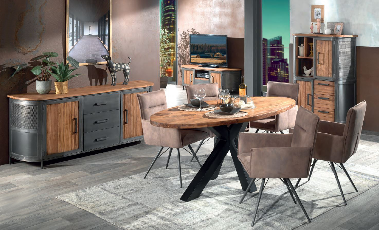 • Materiale: Teck massello naturale riciclato e metallo invecchiato