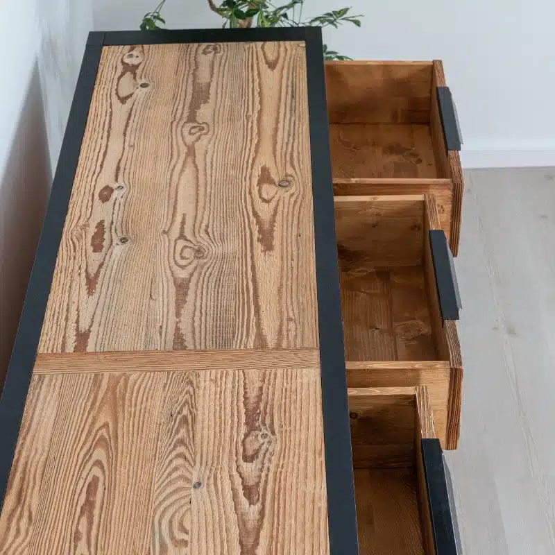 La collezione LOFT combina seducentemente il legno antico con una struttura in melamina nera PAL e maniglie moderne in metallo. Scegliendo la collezione LOFT, opti per arredamenti sia estetici che ecologici. Questa collezione, con i suoi pezzi unici, offre una vera sensazione di ‘industriale, conferendo un carattere speciale e un’autenticità agli interni del tuo spazio, che si tratti di una camera da letto o di un soggiorno.