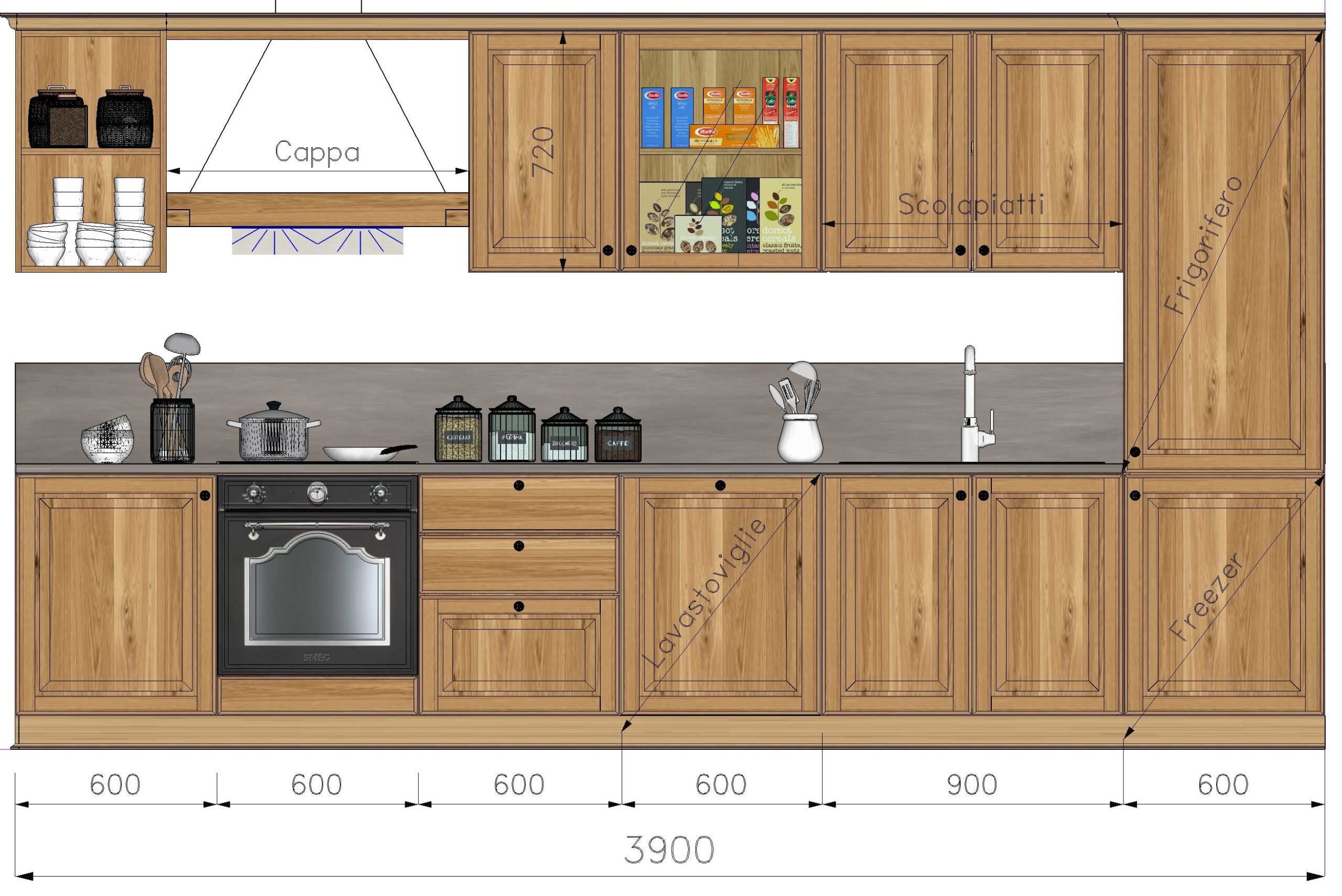 Cucina 390 cm composizione tipo lineare LEGNO DI ABETE MASSELLO LM-CUCINA390