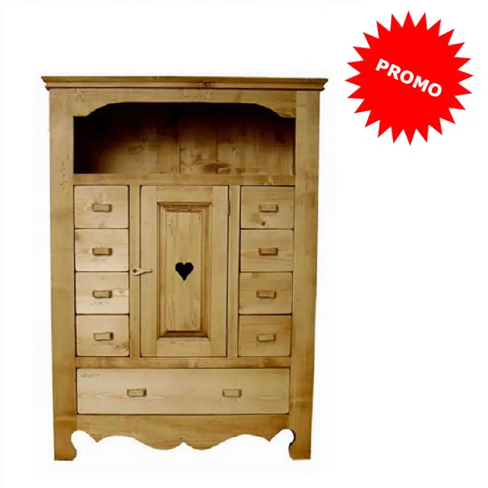 Lโambiente Chamonix รจ tipico delle abitazioni di montagna.ย Caratteristiche della collezione sono lo zoccolo lavorato e la presenza di maniglie/pomoli in legno e dei cuori sulle ante. Tutti gli articoli della linea vengono realizzati al 100% in LEGNO MASSELLO di ABETE, non ci sono parti in compensato/truciolare; anche il retro e il fondo dei cassetti.