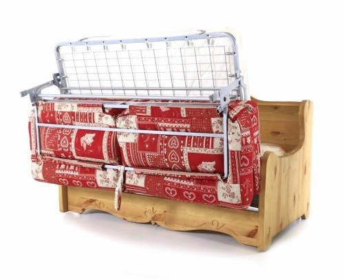 Meccanismo divano letto con rete elettrosaldata e cinghie sotto il sedile