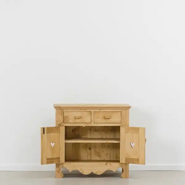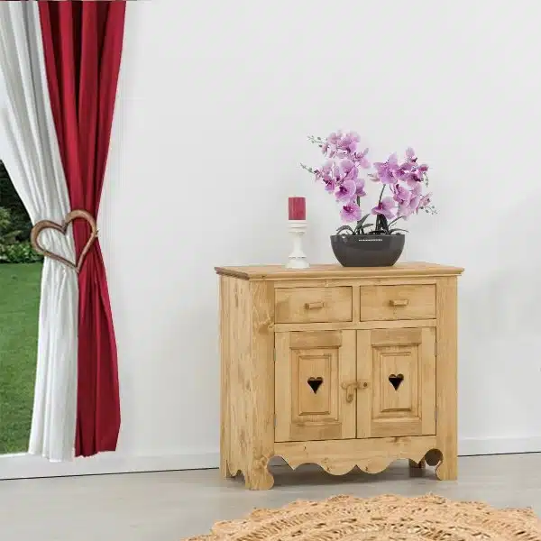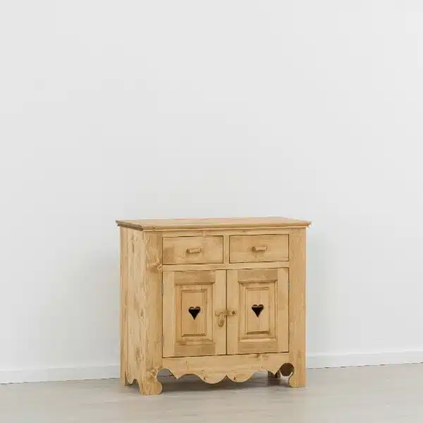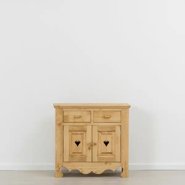 Lโambiente Chamonix รจ tipico delle abitazioni di montagna.ย Caratteristiche della collezione sono lo zoccolo lavorato e la presenza di maniglie/pomoli in legno e dei cuori sulle ante. Tutti gli articoli della linea vengono realizzati al 100% in LEGNO MASSELLO di ABETE, non ci sono parti in compensato/truciolare; anche il retro e il fondo dei cassetti.