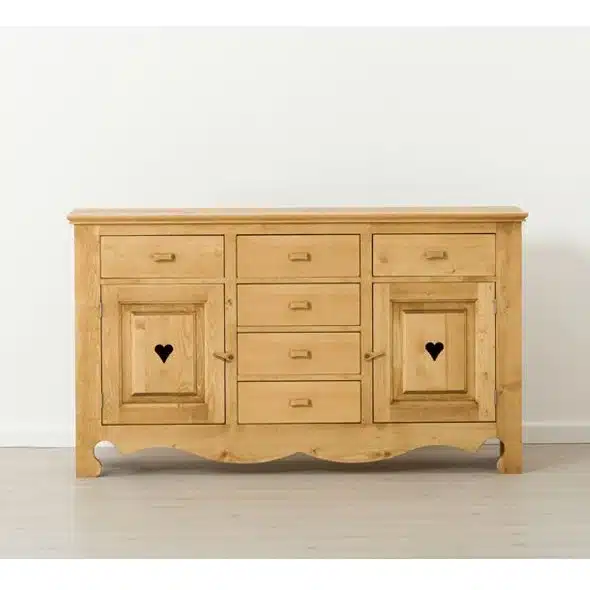 Lโambiente Chamonix รจ tipico delle abitazioni di montagna.ย Caratteristiche della collezione sono lo zoccolo lavorato e la presenza di maniglie/pomoli in legno e dei cuori sulle ante. Tutti gli articoli della linea vengono realizzati al 100% in LEGNO MASSELLO di ABETE, non ci sono parti in compensato/truciolare; anche il retro e il fondo dei cassetti.