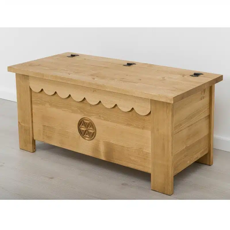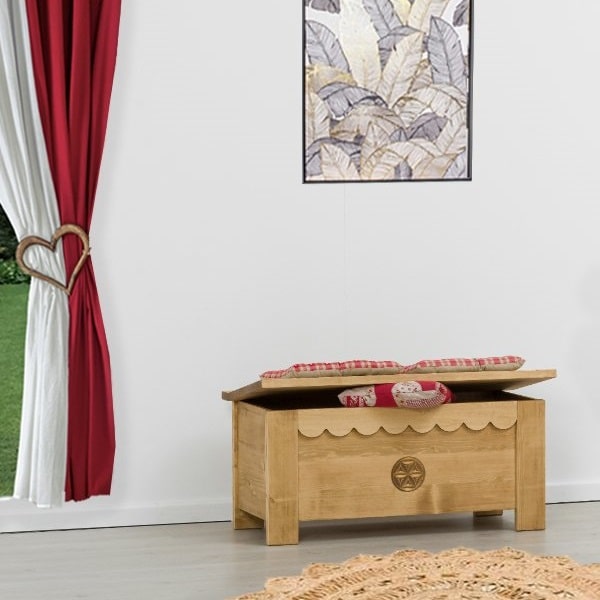 Lโambiente Chamonix รจ tipico delle abitazioni di montagna.ย Caratteristiche della collezione sono lo zoccolo lavorato e la presenza di maniglie/pomoli in legno e dei cuori sulle ante. Tutti gli articoli della linea vengono realizzati al 100% in LEGNO MASSELLO di ABETE, non ci sono parti in compensato/truciolare; anche il retro e il fondo dei cassetti.