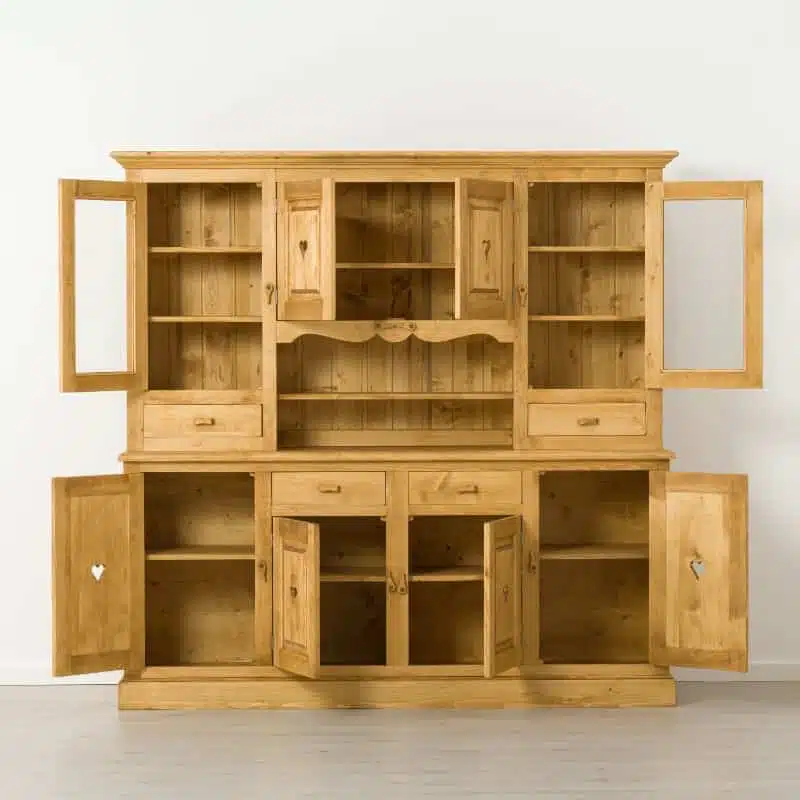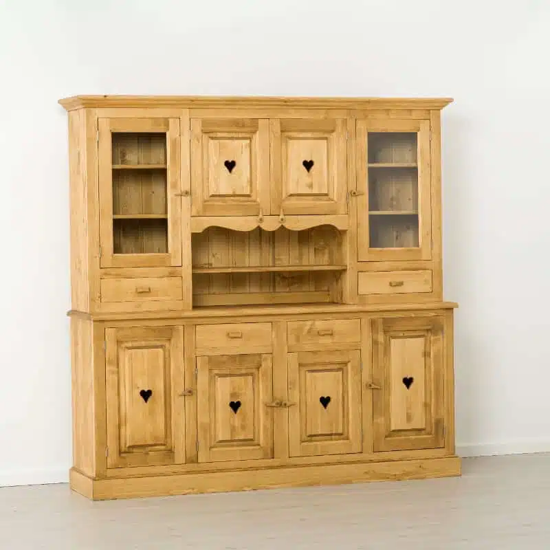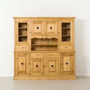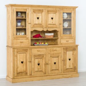 Lโambiente Chamonix รจ tipico delle abitazioni di montagna.ย Caratteristiche della collezione sono lo zoccolo lavorato e la presenza di maniglie/pomoli in legno e dei cuori sulle ante. Tutti gli articoli della linea vengono realizzati al 100% in LEGNO MASSELLO di ABETE, non ci sono parti in compensato/truciolare; anche il retro e il fondo dei cassetti.