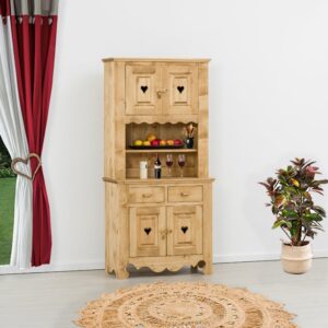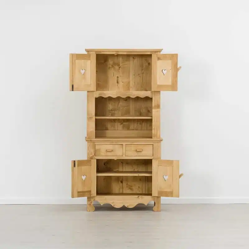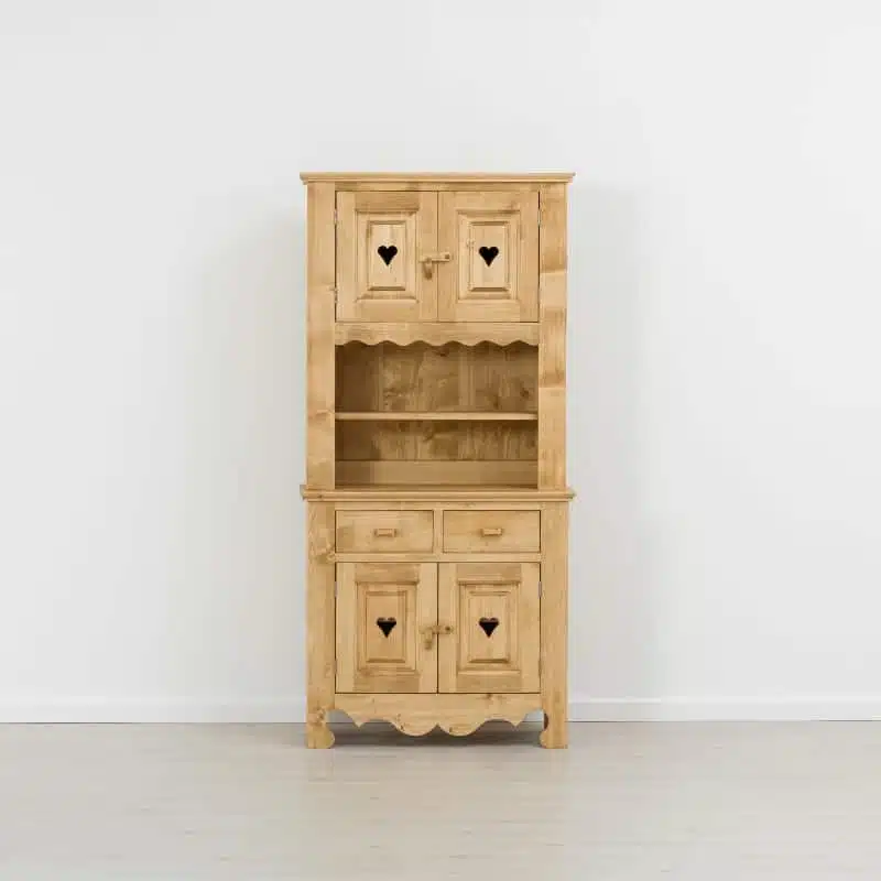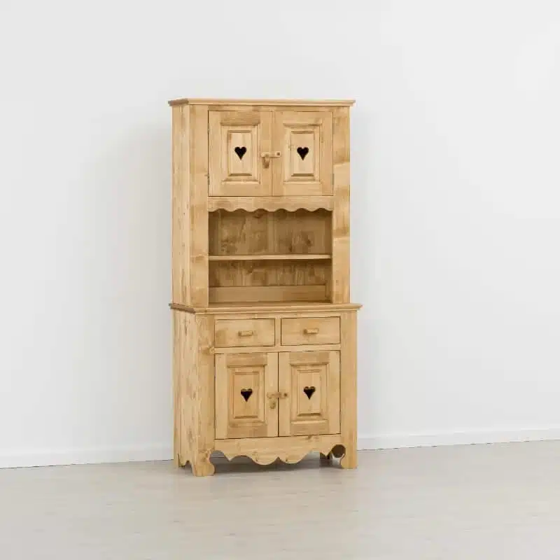 Lโambiente Chamonix รจ tipico delle abitazioni di montagna.ย Caratteristiche della collezione sono lo zoccolo lavorato e la presenza di maniglie/pomoli in legno e dei cuori sulle ante. Tutti gli articoli della linea vengono realizzati al 100% in LEGNO MASSELLO di ABETE, non ci sono parti in compensato/truciolare; anche il retro e il fondo dei cassetti.