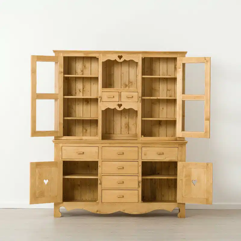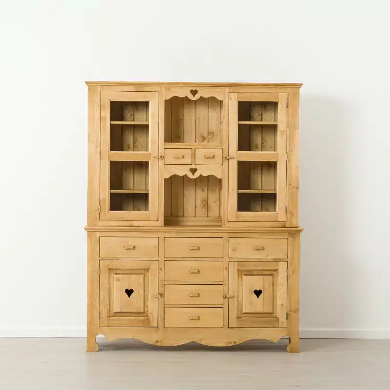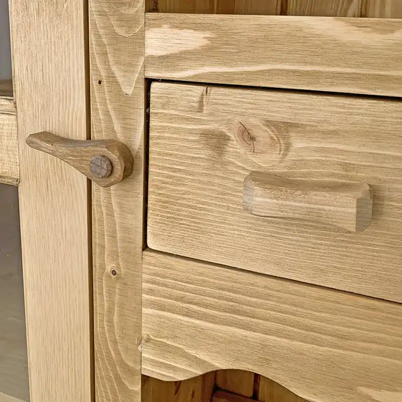Lโambiente Chamonix รจ tipico delle abitazioni di montagna.ย Caratteristiche della collezione sono lo zoccolo lavorato e la presenza di maniglie/pomoli in legno e dei cuori sulle ante. Tutti gli articoli della linea vengono realizzati al 100% in LEGNO MASSELLO di ABETE, non ci sono parti in compensato/truciolare; anche il retro e il fondo dei cassetti.