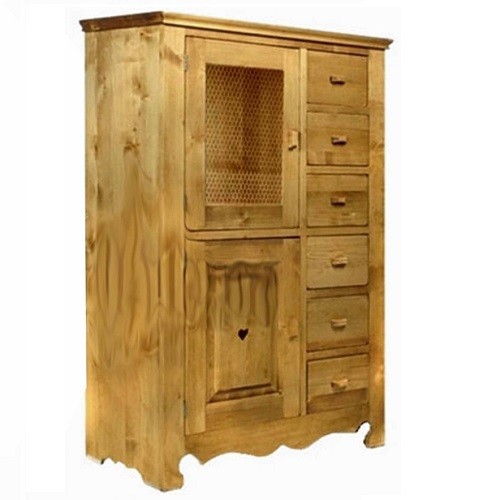 Lโ€™ambiente Chamonix รจ tipico delle abitazioni di montagna.ย Caratteristiche della collezione sono lo zoccolo lavorato e la presenza di maniglie/pomoli in legno e dei cuori sulle ante. Tutti gli articoli della linea vengono realizzati al 100% in LEGNO MASSELLO di ABETE, non ci sono parti in compensato/truciolare; anche il retro e il fondo dei cassetti.