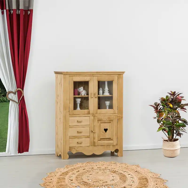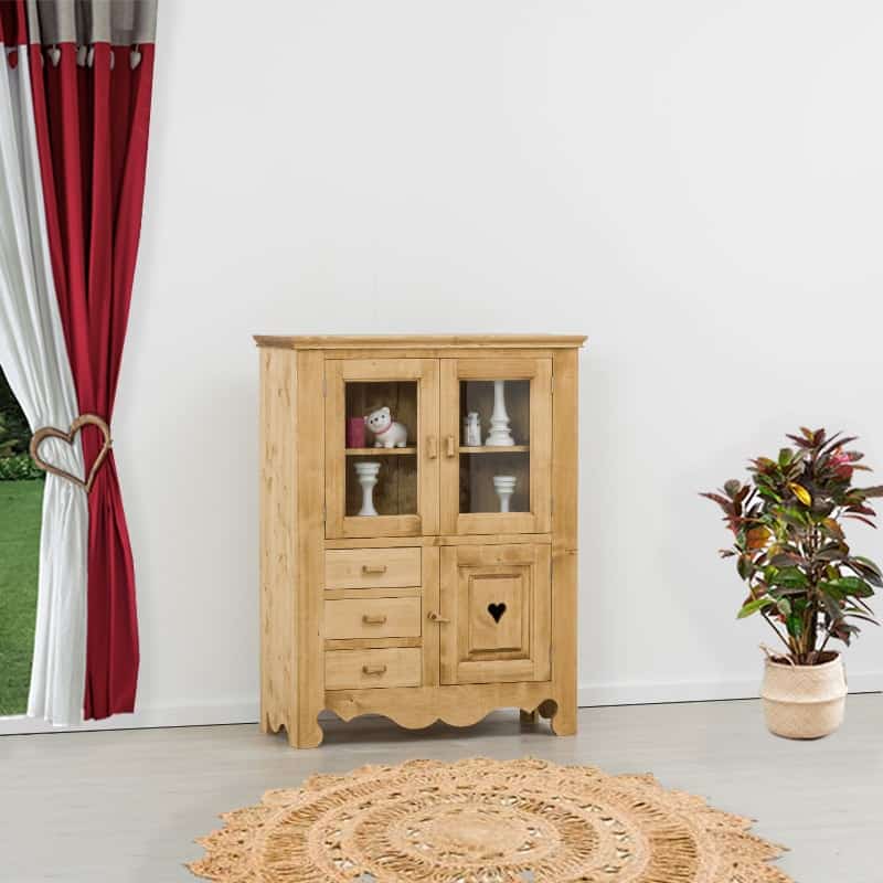 Lโambiente Chamonix รจ tipico delle abitazioni di montagna.ย Caratteristiche della collezione sono lo zoccolo lavorato e la presenza di maniglie/pomoli in legno e dei cuori sulle ante. Tutti gli articoli della linea vengono realizzati al 100% in LEGNO MASSELLO di ABETE, non ci sono parti in compensato/truciolare; anche il retro e il fondo dei cassetti.