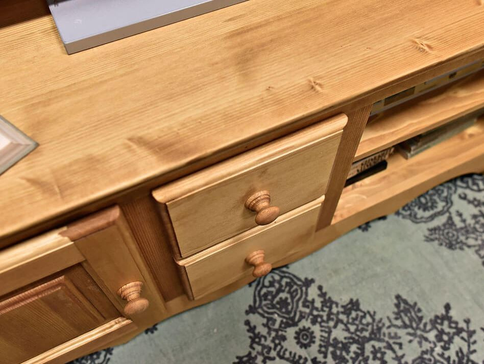 Lโambiente Chamonix รจ tipico delle abitazioni di montagna.ย Caratteristiche della collezione sono lo zoccolo lavorato e la presenza di maniglie/pomoli in legno e dei cuori sulle ante. Tutti gli articoli della linea vengono realizzati al 100% in LEGNO MASSELLO di ABETE, non ci sono parti in compensato/truciolare; anche il retro e il fondo dei cassetti.