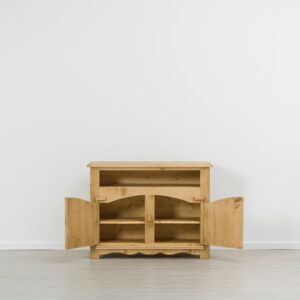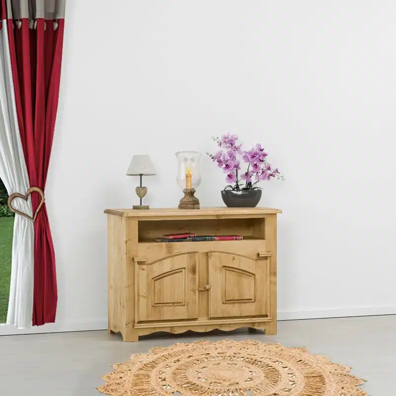 Lโambiente Chamonix รจ tipico delle abitazioni di montagna.ย Caratteristiche della collezione sono lo zoccolo lavorato e la presenza di maniglie/pomoli in legno e dei cuori sulle ante. Tutti gli articoli della linea vengono realizzati al 100% in LEGNO MASSELLO di ABETE, non ci sono parti in compensato/truciolare; anche il retro e il fondo dei cassetti.