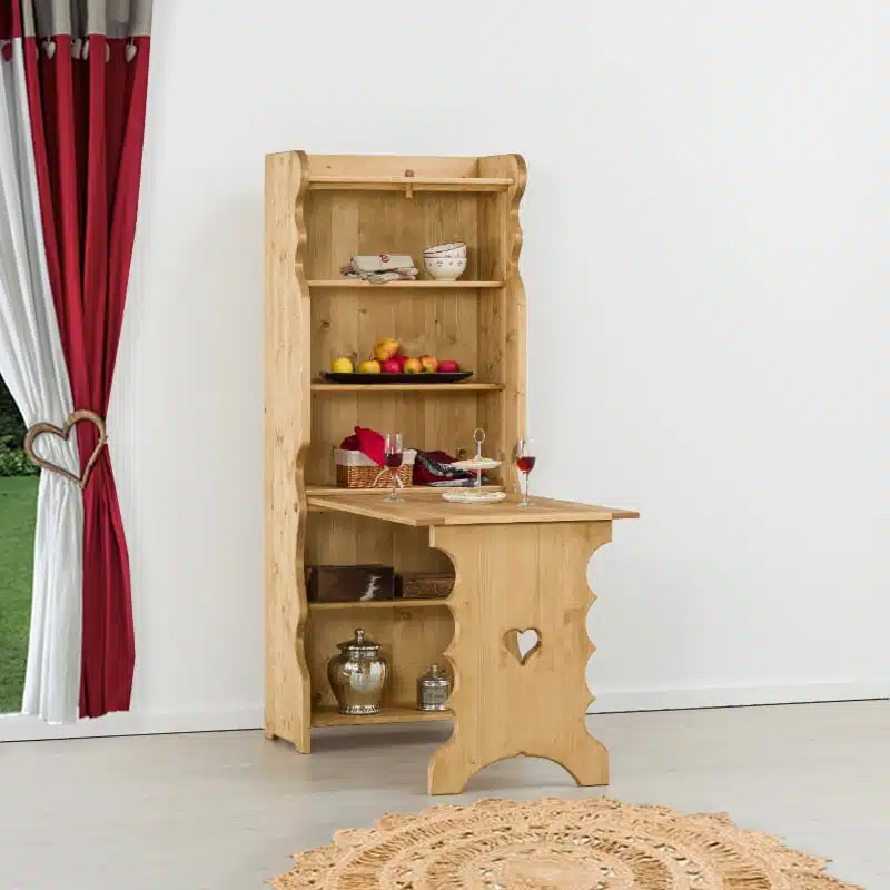 Lโambiente Chamonix รจ tipico delle abitazioni di montagna.ย Caratteristiche della collezione sono lo zoccolo lavorato e la presenza di maniglie/pomoli in legno e dei cuori sulle ante. Tutti gli articoli della linea vengono realizzati al 100% in LEGNO MASSELLO di ABETE, non ci sono parti in compensato/truciolare; anche il retro e il fondo dei cassetti.