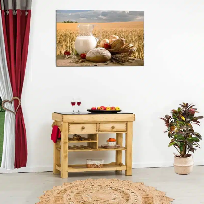Lโambiente Chamonix รจ tipico delle abitazioni di montagna.ย Caratteristiche della collezione sono lo zoccolo lavorato e la presenza di maniglie/pomoli in legno e dei cuori sulle ante. Tutti gli articoli della linea vengono realizzati al 100% in LEGNO MASSELLO di ABETE, non ci sono parti in compensato/truciolare; anche il retro e il fondo dei cassetti.