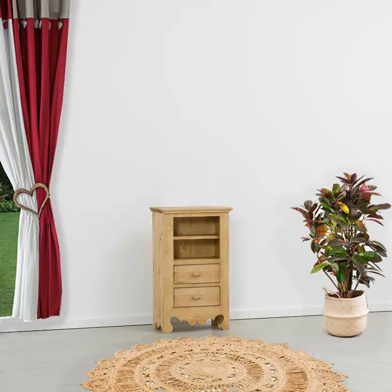 Lโ€™ambiente Chamonix รจ tipico delle abitazioni di montagna.ย Caratteristiche della collezione sono lo zoccolo lavorato e la presenza di maniglie/pomoli in legno e dei cuori sulle ante. Tutti gli articoli della linea vengono realizzati al 100% in LEGNO MASSELLO di ABETE, non ci sono parti in compensato/truciolare; anche il retro e il fondo dei cassetti.