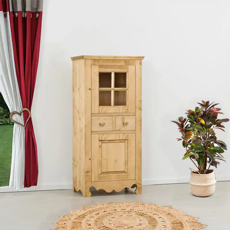 Lโambiente Chamonix รจ tipico delle abitazioni di montagna.ย Caratteristiche della collezione sono lo zoccolo lavorato e la presenza di maniglie/pomoli in legno e dei cuori sulle ante. Tutti gli articoli della linea vengono realizzati al 100% in LEGNO MASSELLO di ABETE, non ci sono parti in compensato/truciolare; anche il retro e il fondo dei cassetti.
