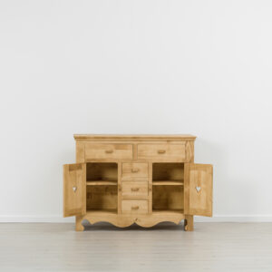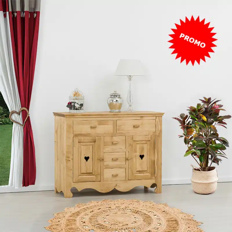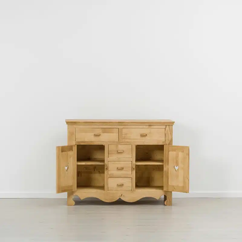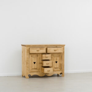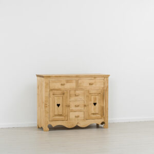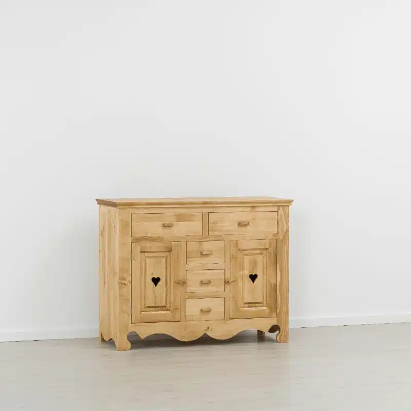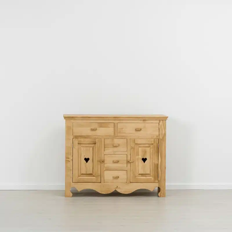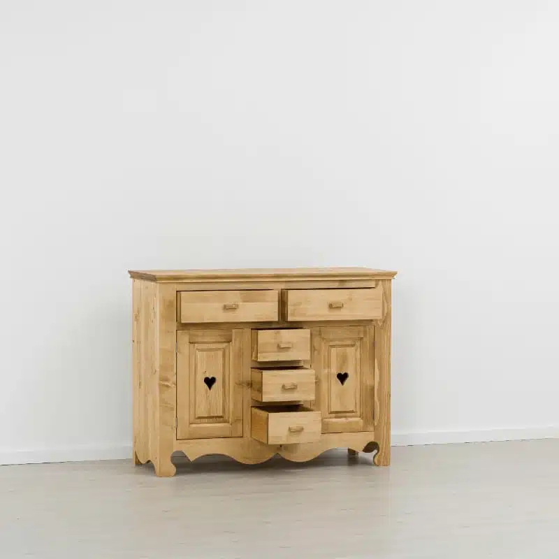 Lโambiente Chamonix รจ tipico delle abitazioni di montagna.ย Caratteristiche della collezione sono lo zoccolo lavorato e la presenza di maniglie/pomoli in legno e dei cuori sulle ante. Tutti gli articoli della linea vengono realizzati al 100% in LEGNO MASSELLO di ABETE, non ci sono parti in compensato/truciolare; anche il retro e il fondo dei cassetti.