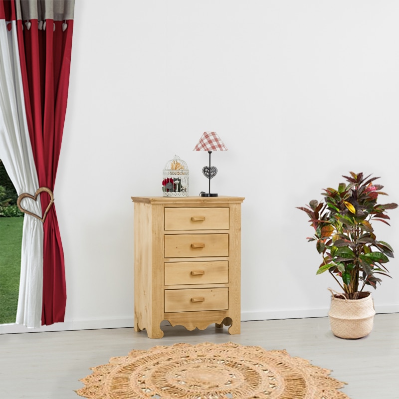 Lโambiente Chamonix รจ tipico delle abitazioni di montagna.ย Caratteristiche della collezione sono lo zoccolo lavorato e la presenza di maniglie/pomoli in legno e dei cuori sulle ante. Tutti gli articoli della linea vengono realizzati al 100% in LEGNO MASSELLO di ABETE, non ci sono parti in compensato/truciolare; anche il retro e il fondo dei cassetti.