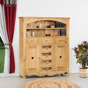 Lโambiente Chamonix รจ tipico delle abitazioni di montagna.ย Caratteristiche della collezione sono lo zoccolo lavorato e la presenza di maniglie/pomoli in legno e dei cuori sulle ante. Tutti gli articoli della linea vengono realizzati al 100% in LEGNO MASSELLO di ABETE, non ci sono parti in compensato/truciolare; anche il retro e il fondo dei cassetti.