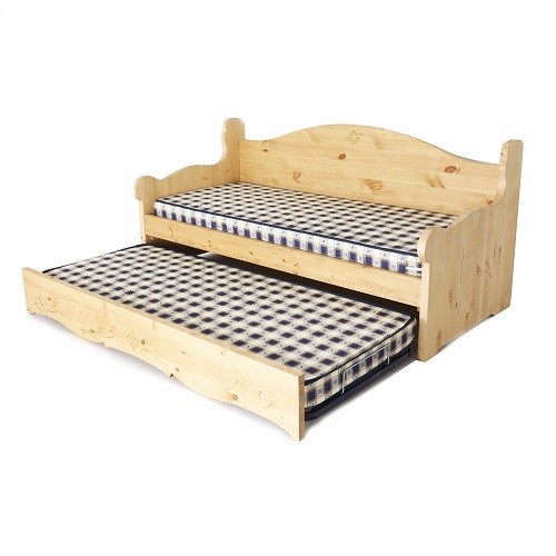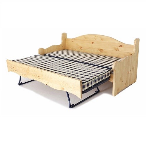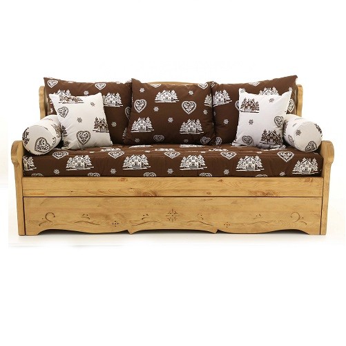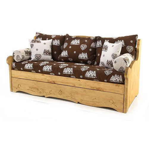 La collezioneย Aspin propone una vasta sceltaย di divani convertibili in divani-letto e non tipici dello stile montano. Tutti i divani vengonoย realizzati al 100% in legno massello di pino con decoro frontale che da quel tocco rustico in piรน.