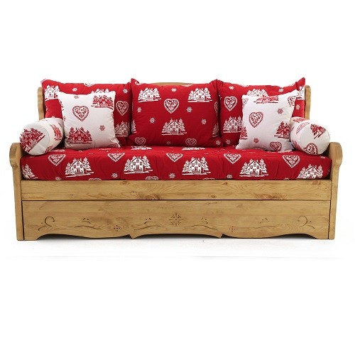 La collezioneย Aspin propone una vasta sceltaย di divani convertibili in divani-letto e non tipici dello stile montano. Tutti i divani vengonoย realizzati al 100% in legno massello di pino con decoro frontale che da quel tocco rustico in piรน.