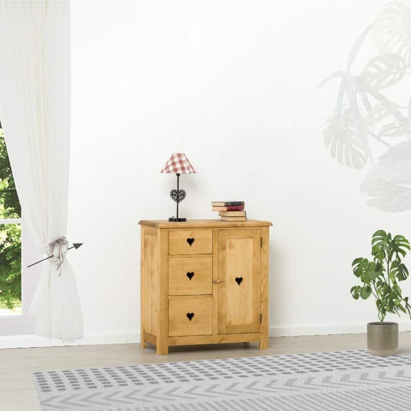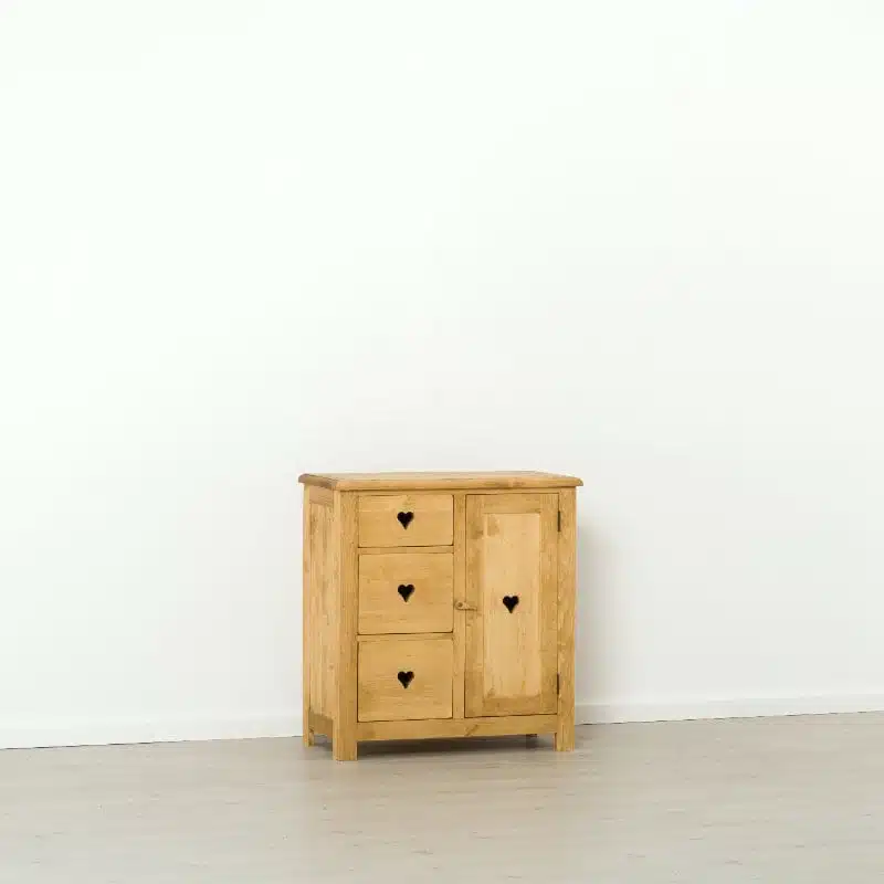 La collezione Megeve evoca il legno nel senso originario del termine. Cuori intagliati tipici di mobili country e rustici tradizionali, la sobrietร dei suoi spessori dร ad ogni ambiente un aspetto accogliente in cui vivere.