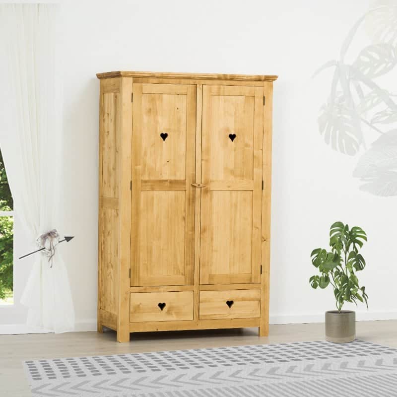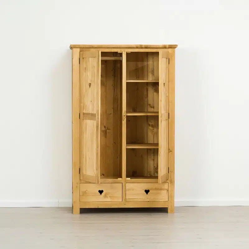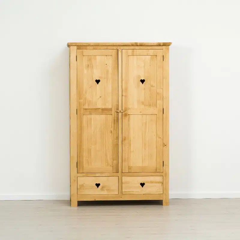 La collezione Megeve evoca il legno nel senso originario del termine. Cuori intagliati tipici di mobili country e rustici tradizionali, la sobrietร dei suoi spessori dร ad ogni ambiente un aspetto accogliente in cui vivere.