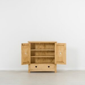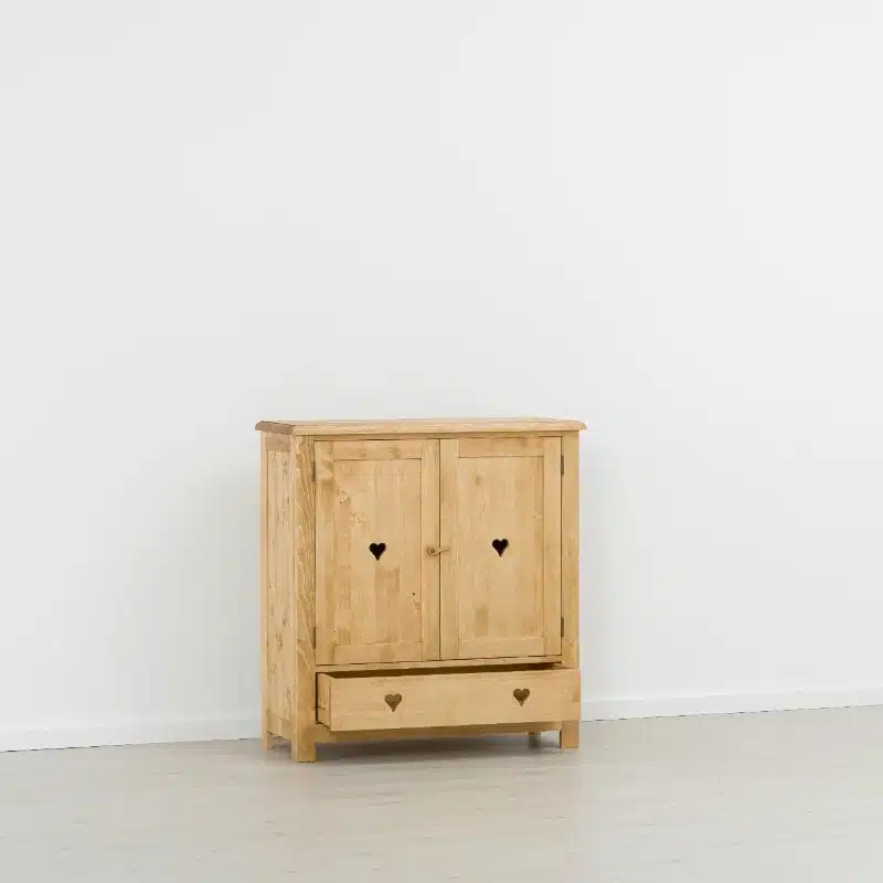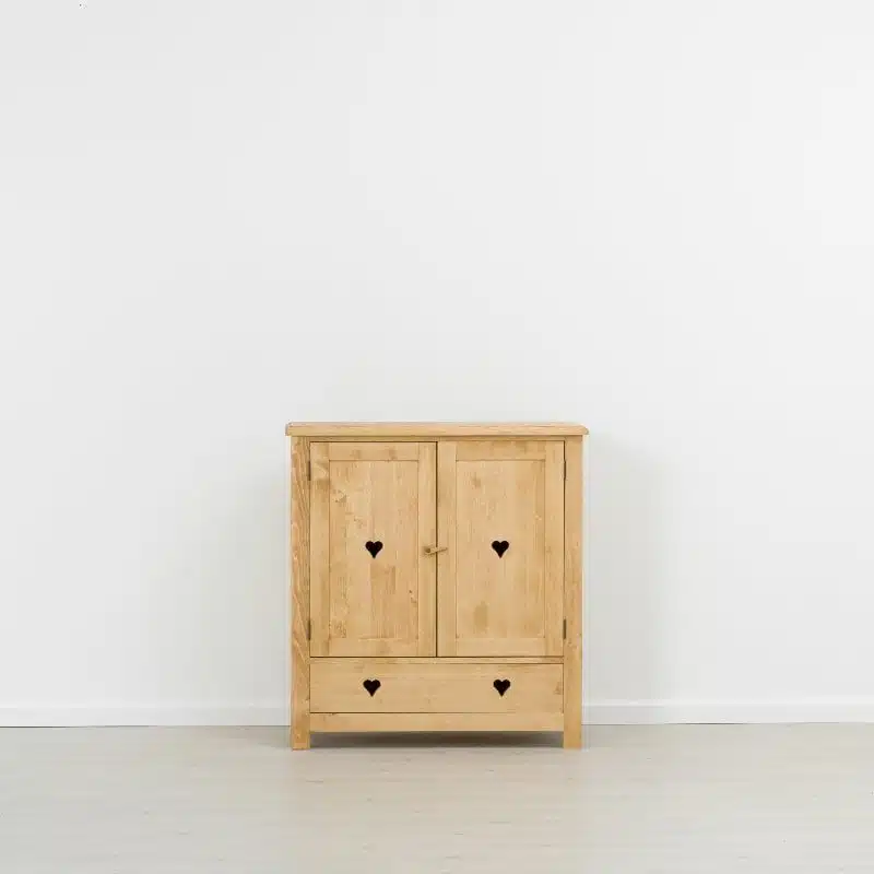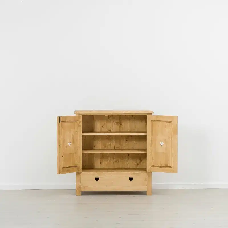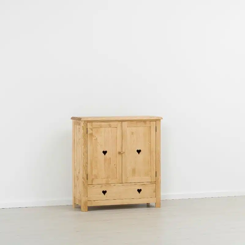 La collezione Megeve evoca il legno nel senso originario del termine. Cuori intagliati tipici di mobili country e rustici tradizionali, la sobrietร dei suoi spessori dร ad ogni ambiente un aspetto accogliente in cui vivere.